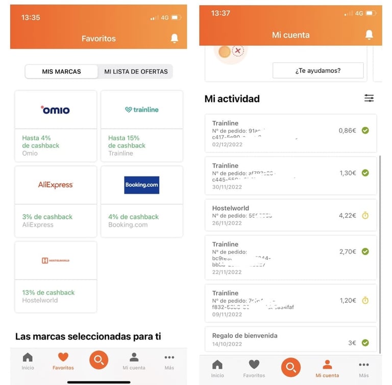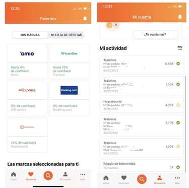 Es parecido a lo que hace Hopper, con la diferencia de que en esta opción reservas directamente con los buscadores que conoces: Booking, Iberia, Omio… Y retiras tu cashback en efectivo.