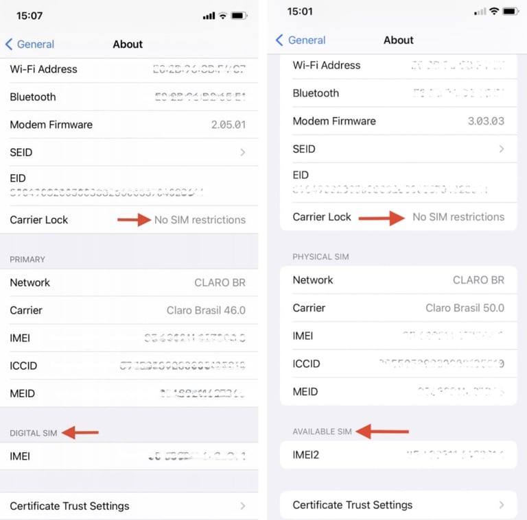 En un iPhone, ve a Ajustes -> General -> Información y baja hasta el apartado de “SIM DISPONIBLE” o “SIM DIGITAL”. Debajo debería haber un IMEI, lo que indicaría que las eSIM son compatibles.